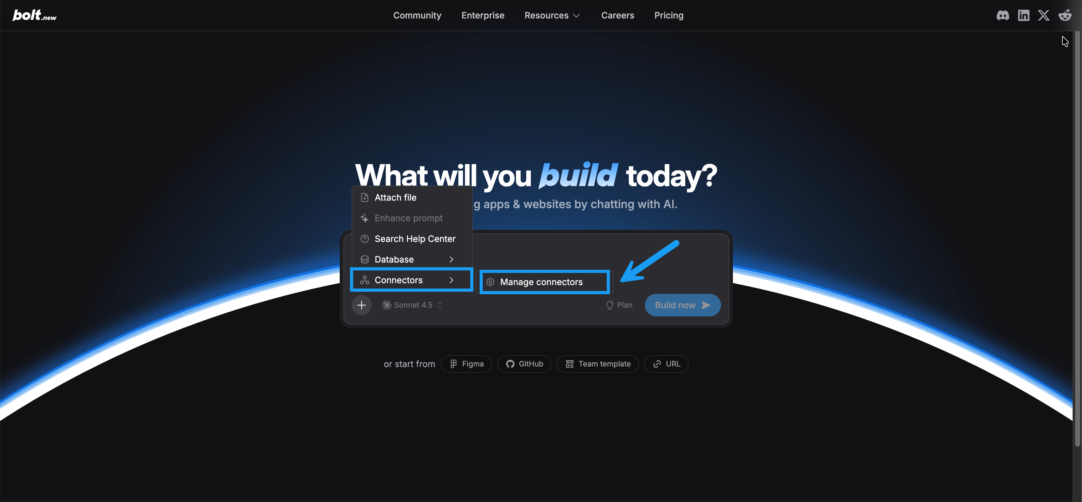 - From the Bolt homepage, in the chatbox, click the plus icon.