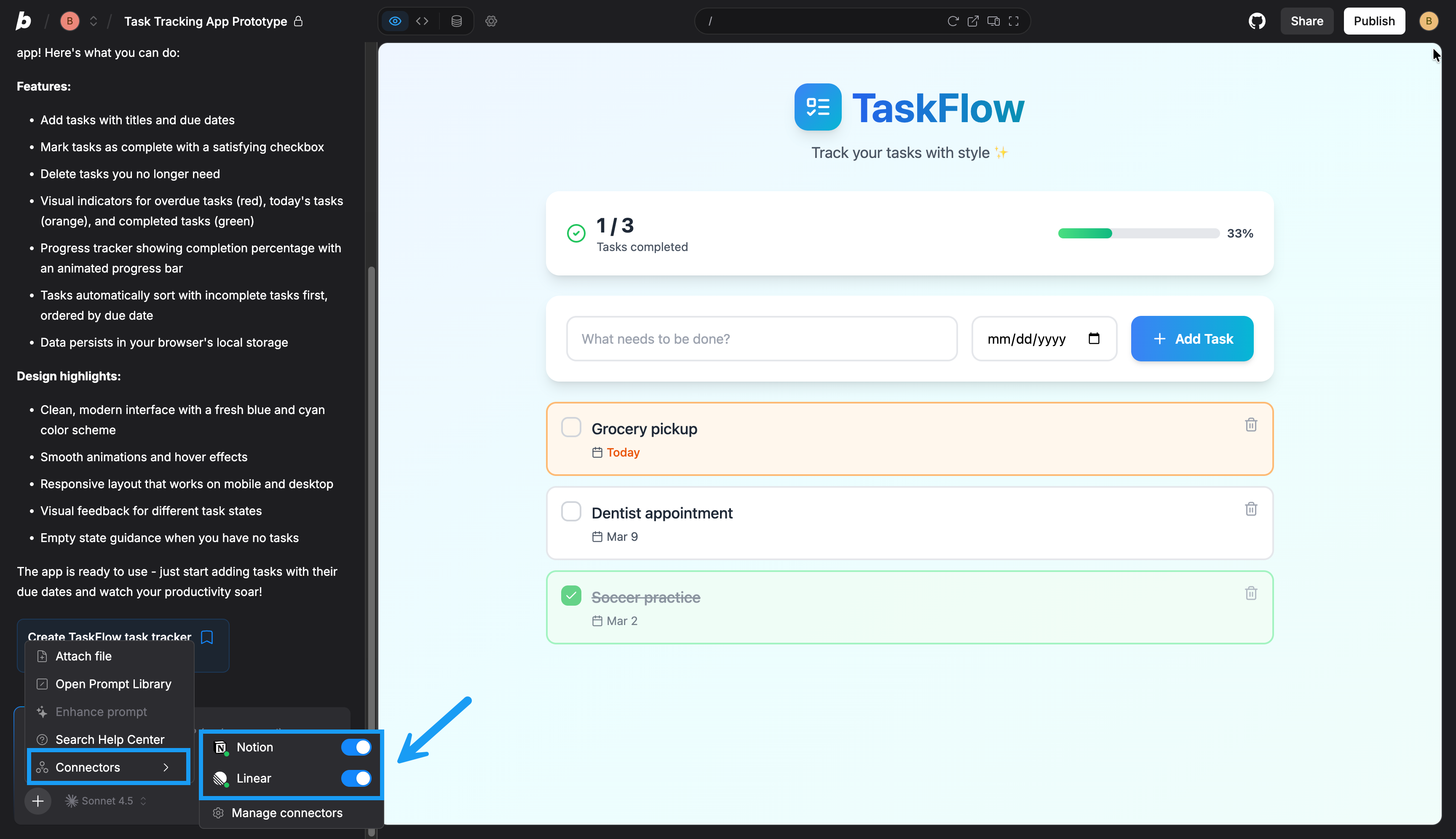- Connect to Linear to pull in context from your Linear tasks