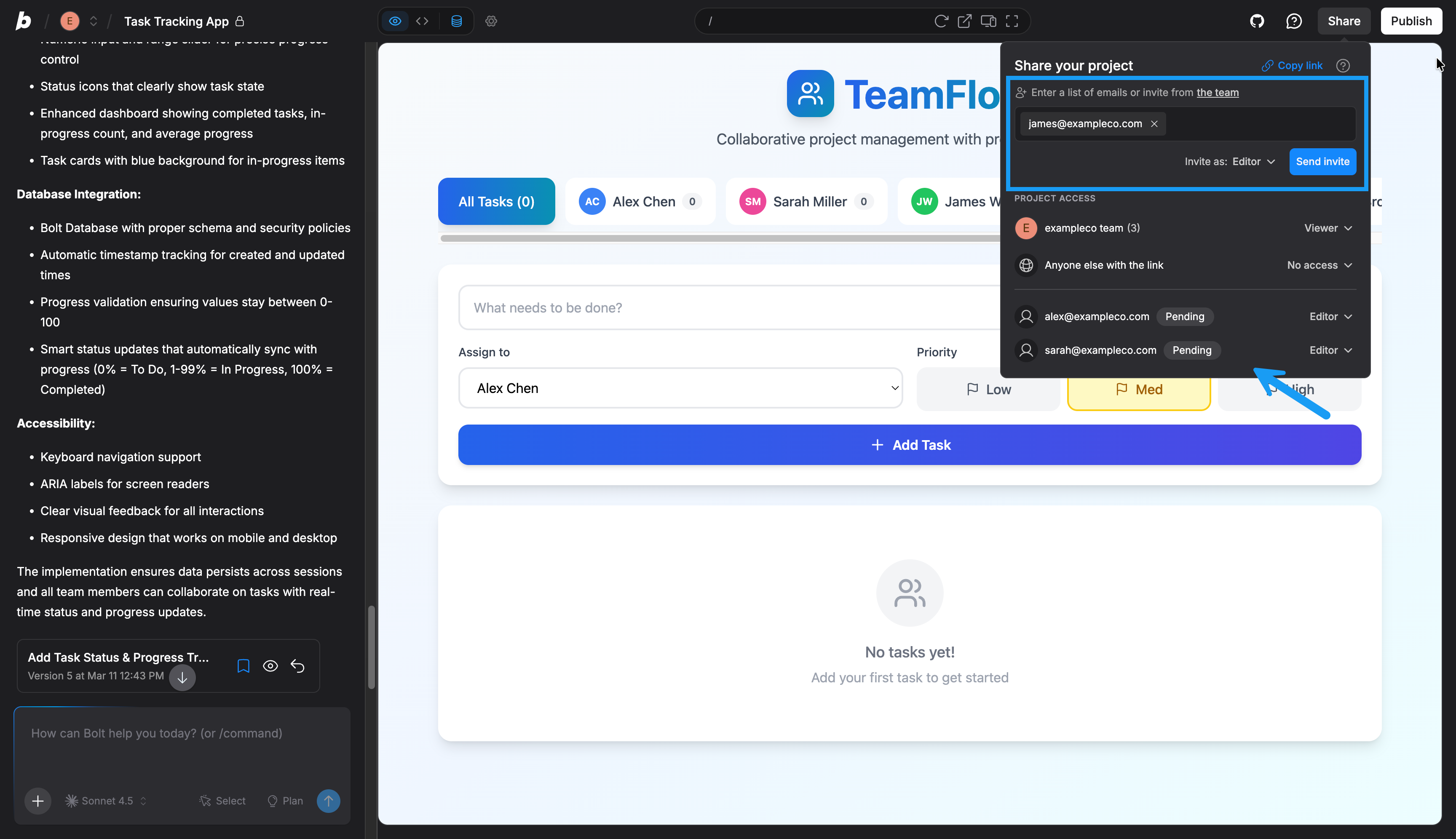 - In the email field, enter the address of each collaborator you want to invite, or click the team to select from your team members.